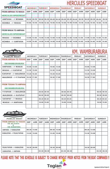 We Provide the latest boat and ferry schedule to/from Togian Islands